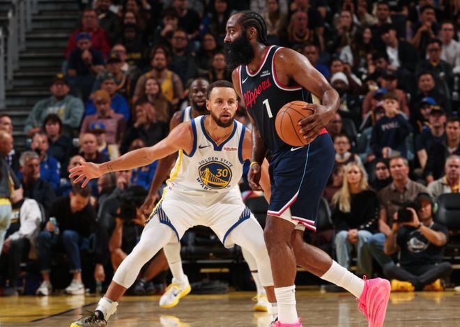惺惺相惜,勇士队库里在战胜快船队前与哈登分享“特别”时刻